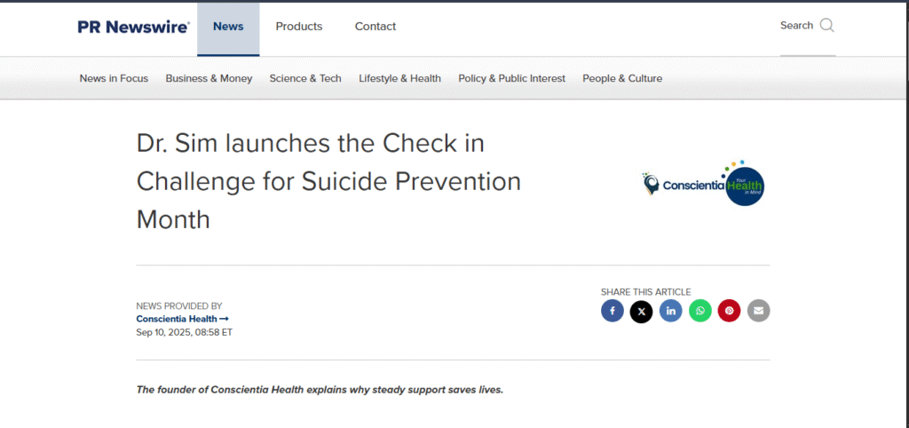 Dr. Simbiat Adighije of Conscientia Health is inviting everyone to take part in the Check-in Challenge for Suicide Prevention Month: reach out to someone you haven’t connected with in a while – a text, a phone call, a message just to say “you were on my mind.” A simple gesture, but one that can make a real difference.